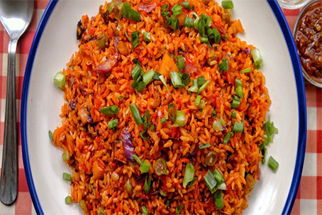 - Finally add the cooked Rice, Spring onion’s green and mix well gently. It’s ready to serve